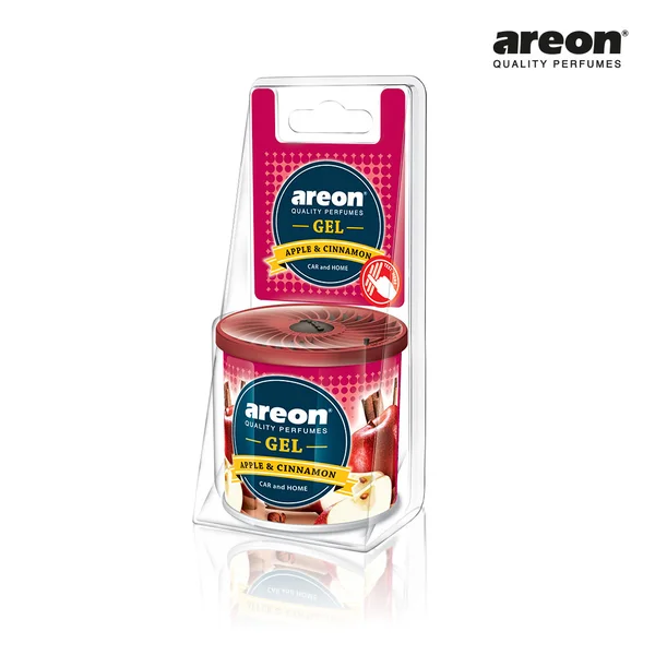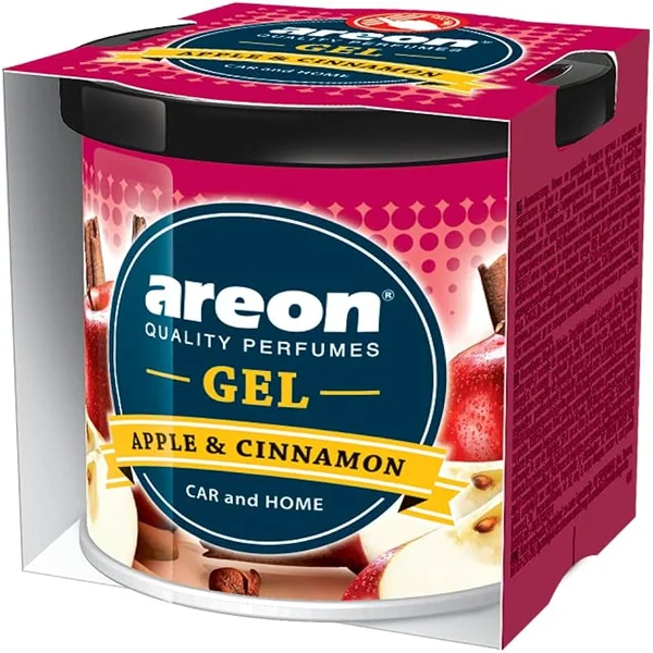 This Areon (Apple & Cinnamon) gel air freshener perfume is perfect for car interiors, rooms, and offices and makes them smell great. This Areon gel (Apple & Cinnamon) perfume eliminates odors and freshens the air, has a long-lasting fragrance and sweet smell that can remain up to 60 days (temperature and airflow will affect duration and intensity).