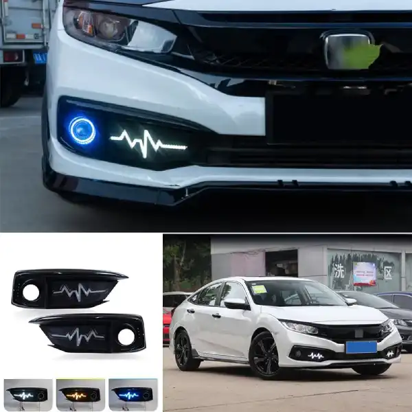 Upgrade your Honda Civic’s front-end look with the premium Arrow Style DRL Fog Cover, designed specifically for Civic models from 2016 to 2021. This sleek, modern accessory not only enhances your vehicle’s aesthetics but also improves visibility and safety with bright Daytime Running Lights (DRLs).