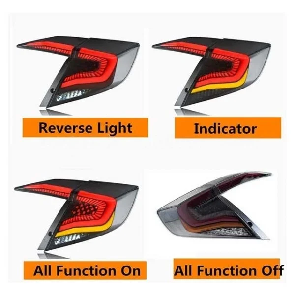 The Honda Civic Model (2016-2021) Snake Style Back Lamps Light Smoke are aftermarket rear lights designed to enhance the look of your Honda Civic. These lamps feature a light smoke finish that adds a unique and stylish touch to the rear of the car.