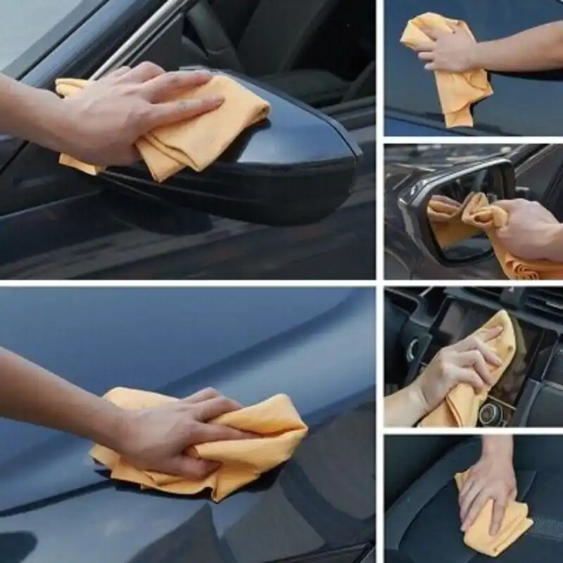 A chamois cloth is a soft and absorbent piece of synthetic leather that is used for drying and removing water drops. Originally made from the skin of a chamois goat, modern chamois cloths are typically made from synthetic materials that offer even better results.