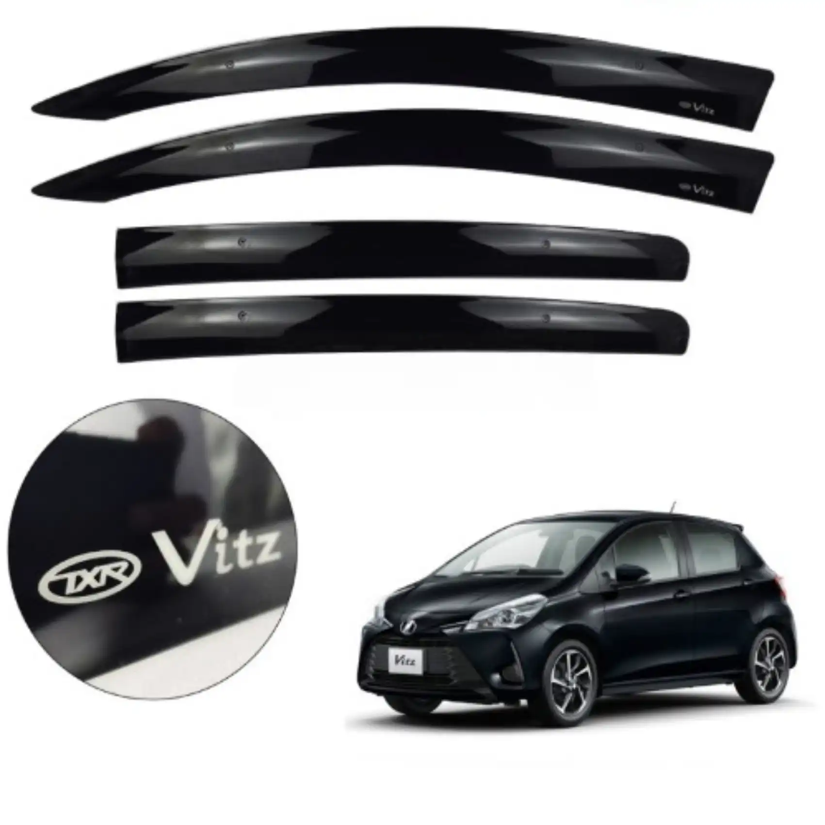 These window visors and air press are fit for Toyota Vitz 2016-23.Let’s fresh air in and keep the sunlight, rain, and snow out. The window deflector allows fresh air to circulate in the car and removes stale air and odors. Air press reduces interior wind noise and window glass vibrating and protected from window glass to be cracked and helps to reduce heat inside of the vehicles. Precision-engineered and custom molded for an exact fit.