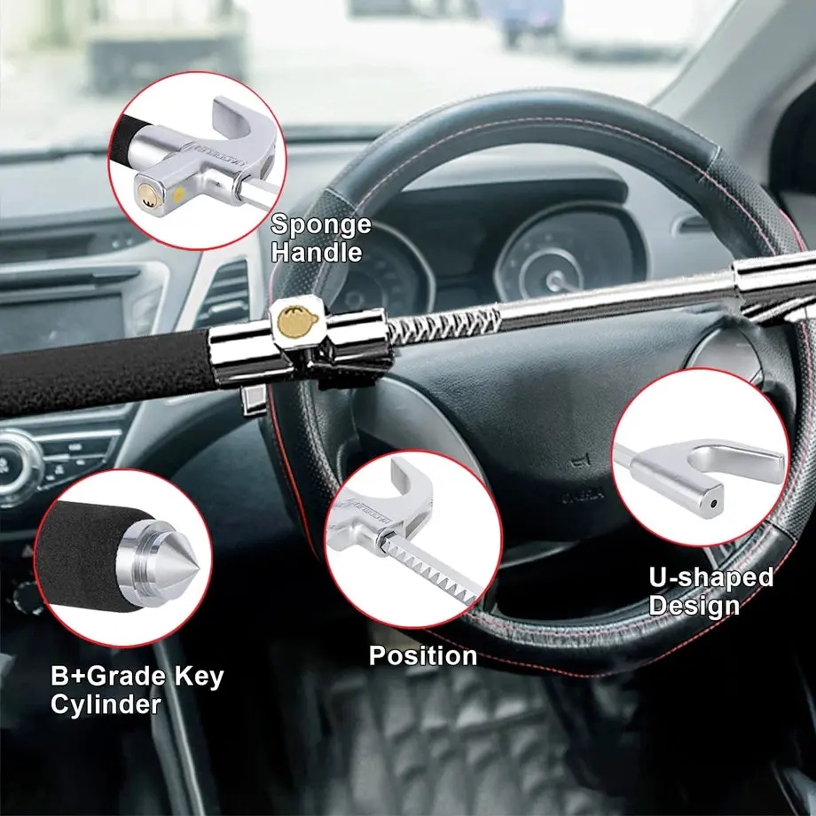 Protect your vehicle with confidence using our Universal Anti-Theft Steering Wheel Lock. Designed to deter theft and ensure peace of mind, this high-strength security device fits most cars, SUVs, vans, and trucks with ease.